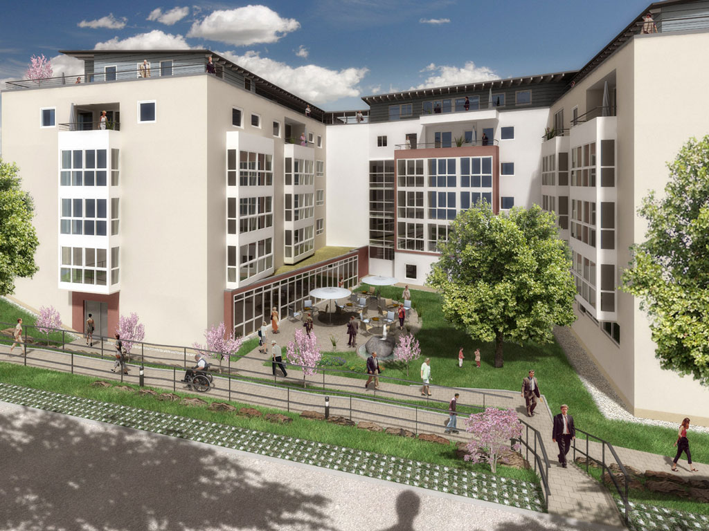 Grundstücks- und Projektentwicklung des Pflegeheims des Deutschen Roten Kreuzes KV Böblingen, sowie altersgerechte Wohnungen. Die ausgearbeitete Nutzungskonzeption sieht ein Pflegeheim mit 76 Betten des Deutschen Roten Kreuzes KV Böblingen vor, in den oberen Geschoßen 26 altersgerechte Wohnungen, sowie eine Tiefgarage. Grundstück 3.098 m²; BGF 8.529 m²; Investitionshöhe EUR 11,5 Mio.
