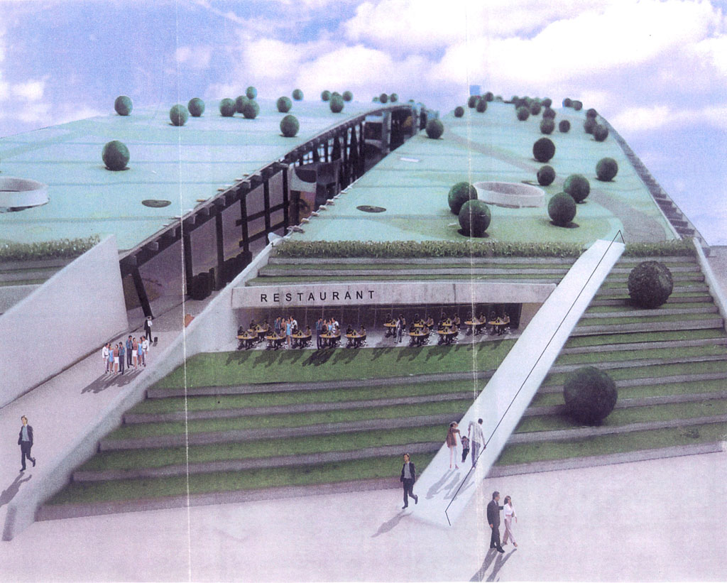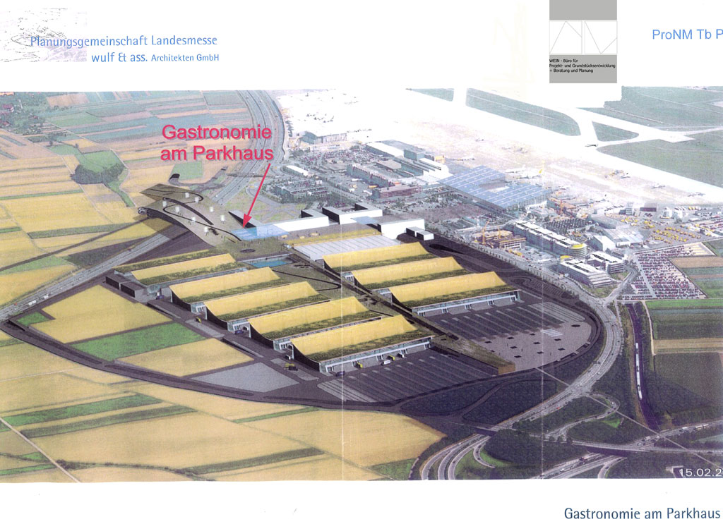 Auf unsere Anregung hin wurde mit der Projektgesellschaft Neue Messe im Auftrag eines Restaurantbetreibers die Machbarkeit eines Restaurants an der Neuen Messe-Stuttgart entworfen und untersucht.