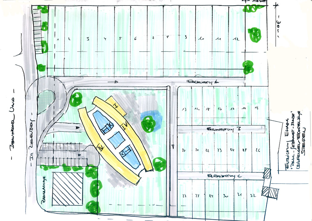 Nach der Aufgabe des Standortes und Umzug nach Berlin wurde für das ca.198 ar große Grundstück eine neue, zeitgemäße Nutzung entwickelt. Die in Absprache mit der Stadt entwickelte Konzeption zielte auf ein Pflegeheim mit 105 Betten und einer Eigenheimbebauung mit Doppelhäusern hin.